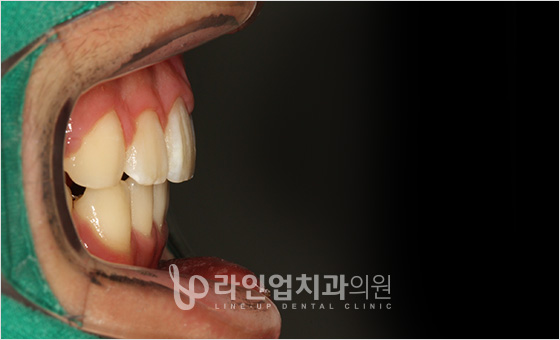 • 从侧面看与鼻子和下巴尖连接线相比嘴唇突出的情况