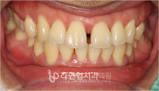 임플란트 식립할 공간이 상실되어 인접치아가 쓰러진 경우에 부분교정을 진행합니다.