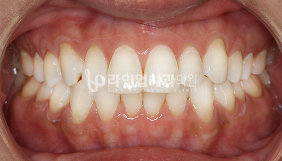 미백약제를 치아에 도포하여 누렇게 변했던 치아의 색을